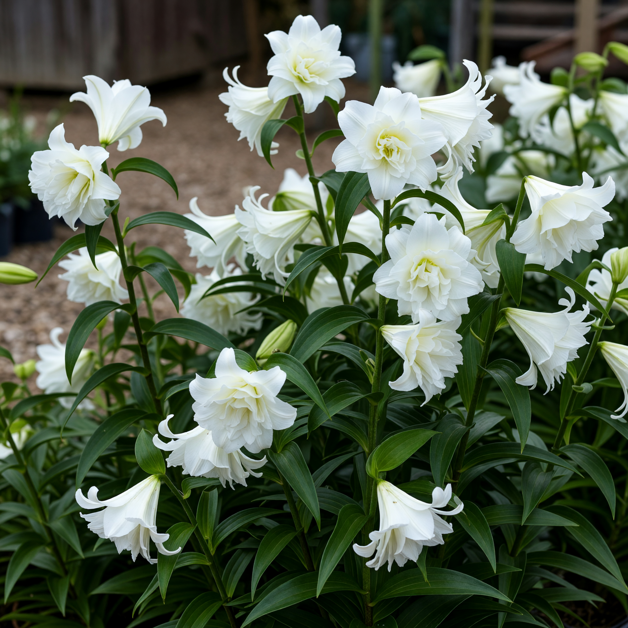 Large, sweetly scented, double white flowers that are completely pollen-free. A real showpiece for summer borders and large containers, and a favourite of ours for cutting.