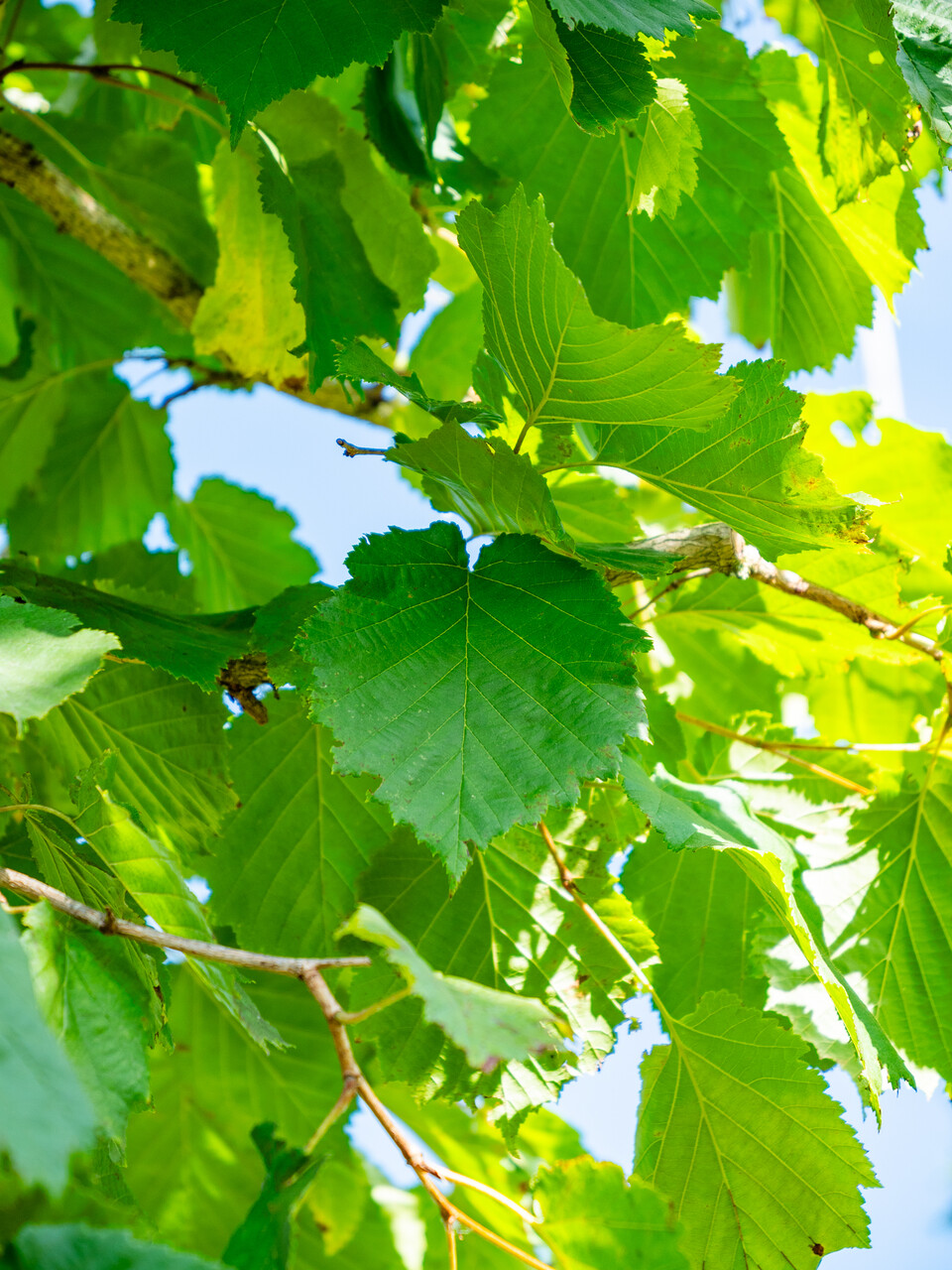Corylus colurna, or Turkish Hazel, offers a dense, pyramidal crown and unique, corky bark. Its bright green summer foliage turns yellow in autumn. It grows to 10-15m, making it an excellent, long-lasting street tree. This species thrives in sun to partial shade and various soils.